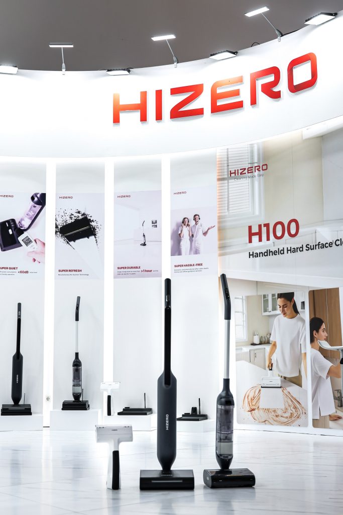 此次展会上首次亮相的H100手持硬面清洁器,采用创新性的多滚轮系统和自清洁功能,可单手操作,能有效清洁玻璃、瓷面、石英台面等多种硬质表面,并在清洁过程中同步完成吸水烘干,避免二次污染。HIZERO已经构建了完整的清洁生态系统,包括手持扫拖一体机、无线清洁产品、手持表面清洁产品以及即将推出的机器人拖地产品。